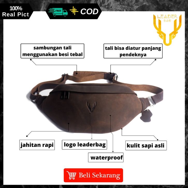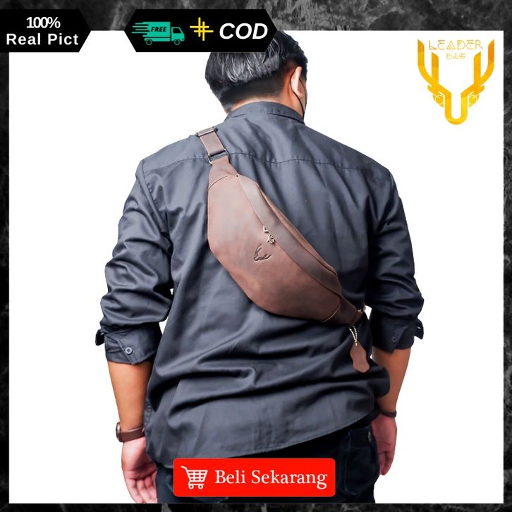 leaderbag Tas Selempang Pria Kulit Sapi Asli Warna Coklat Khaki Terbaru Atau Tas Pinggang Waistbag Kulit Cowok Keren Br