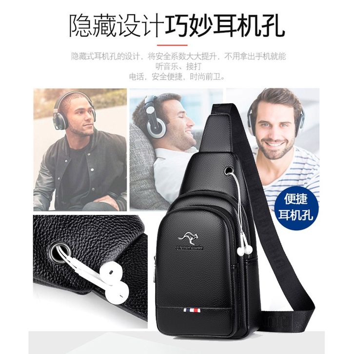 Original Junzidaishu Tas Selempang Kulit Pria Chest Sling Bag Import Casual Style