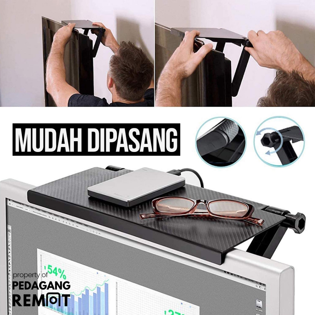 Tempat Remote TV / Bracket Tatakan Modem Router HP Set Top Box Rak Gantung Hanger Serbaguna Meja Atas TV Monitor Komputer Screen Top Shelf