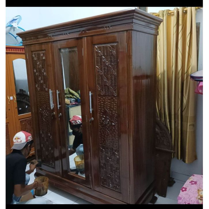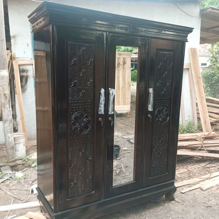 Lemari kayu 3 pintu lemari pakaian kayu high quality lemari baju pakaian kayu jati 3 pintu