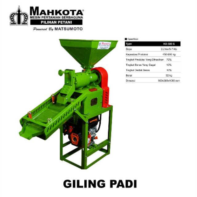 Gilingan padi KD 580S mahkota pakai mesin mesin penggerak