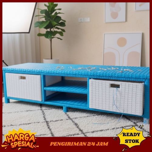 Meja TV Rotan Sintetis Aesthetic 2 Laci Rak Susun Minimalis Elegan Hig Qualty Termurah