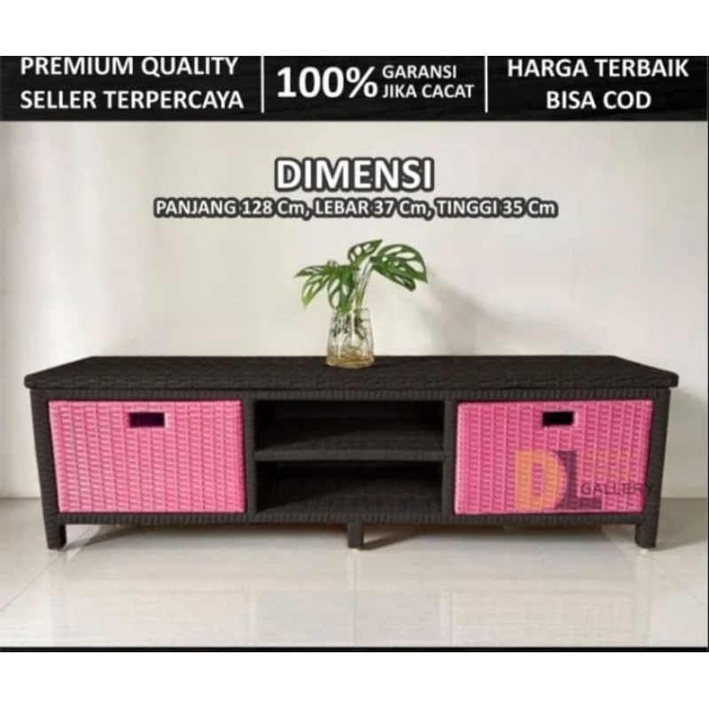 Redy Stok Meja Tv Rotan Sintetis Laci 2 Elegan