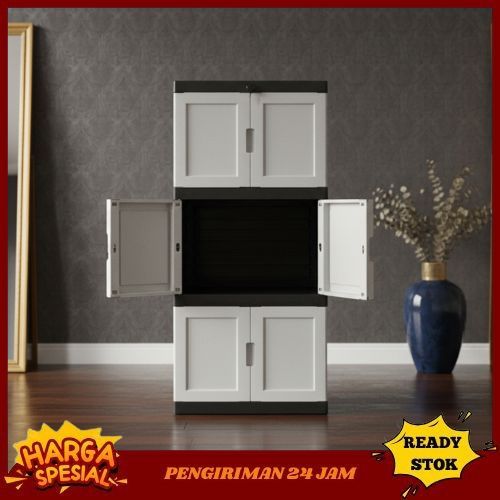 Lemari plastik 4 susun jumbo lemari pakaian plastik kaca ada kunci berkualitas 2024