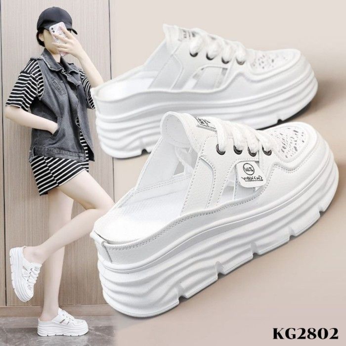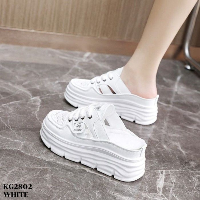 Wedges Wanita Terbar Import Sepatu Sneakers Wedges Slop Import Fashion Korea KG2802 - WHITE 40