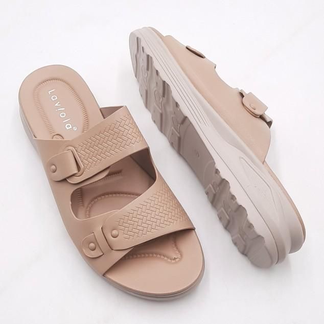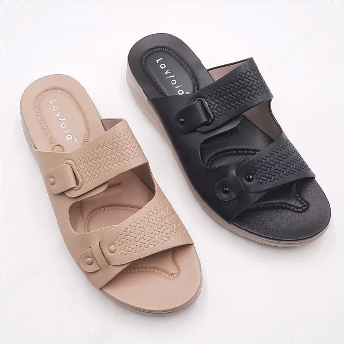 Wedges Wanita Terbar Import Laviola 3941 Wsk - sandal sedges wanita - hak 2 cm Black & Khaki - Khaki 37