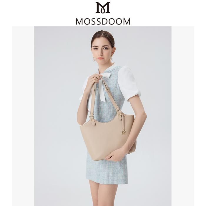 Tas Wanita Simple Elegan Branded Jims Honey Terbaru MOSSDOOM Tas Bahu Klasik Wanita Lona Bag Tas Totebag Simpel - White