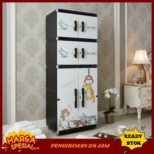 CHIKARA Lemari Pakaian Plastik MR PLAS GANTUNGAN STICKER JUMBO Lemari Susun Karakter Cermin Kunci