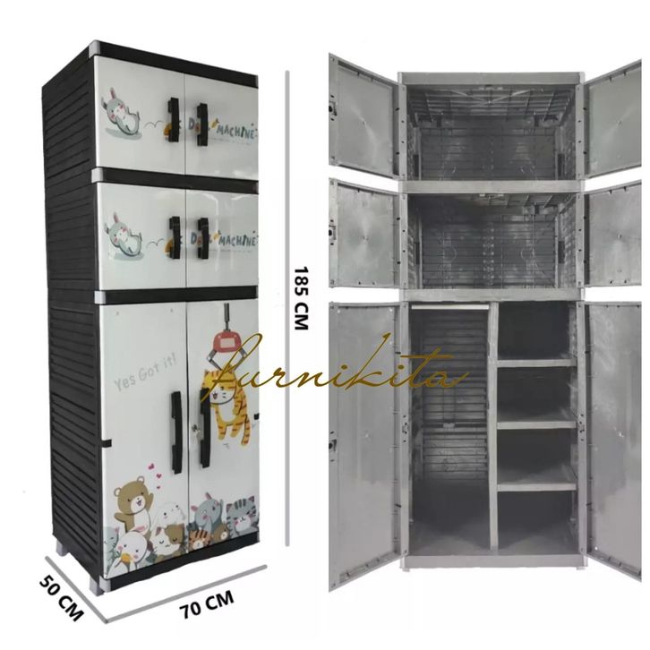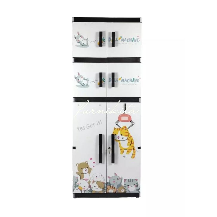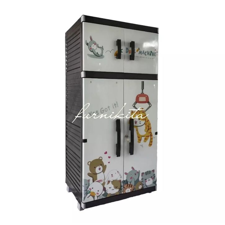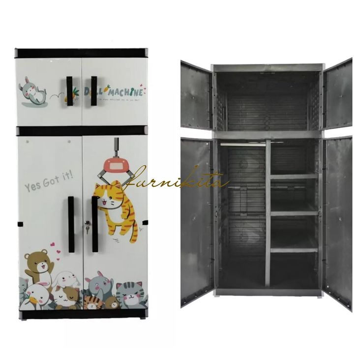 Lemari Pakaian Plastik MR PLAS GANTUNGAN STICKER JUMBO Lemari Susun Karakter Cermin Kunci Lemari Serbaguna