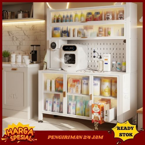LEMARI DAPUR HOMEDOKI MINIMALIS KACA TERTUTUP ANTI DEBU 4 SUSUN RAK PIRING KACA KERAMIK MODEL TERBARU 2025