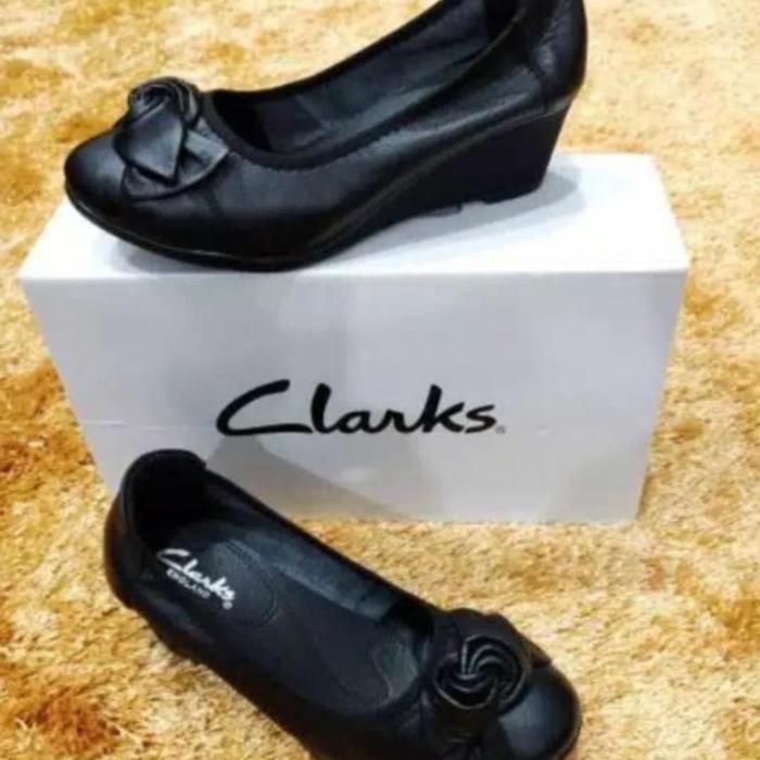 Wedges Wanita Terbar Import sepatu clarks wedges hitam full 5 cm original