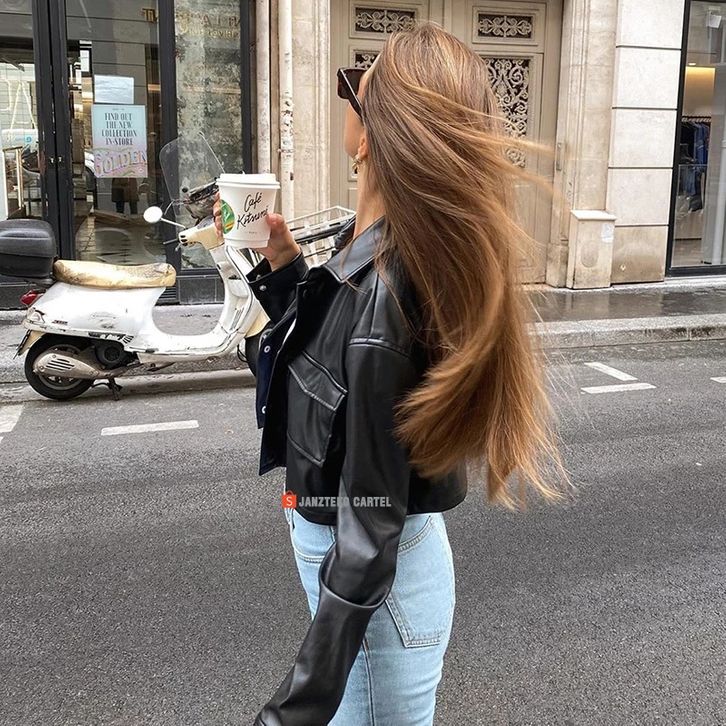 JNK x CROP - Jaket Kulit Sintetis Viena Wanita Crop Viral Kekinian Vegan PU Faux Synthetic Leather Korea Kpop Sexy Cewe