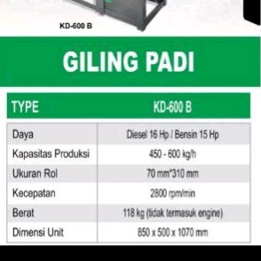 Mesin Giling Padi Rice Mill KD 600 B Mahkota