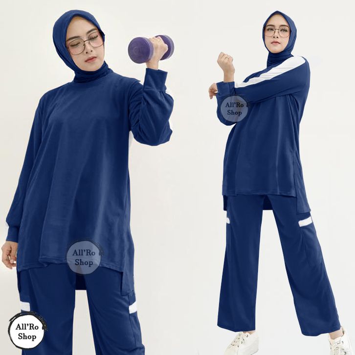 Set Nara - Setelan Olahraga Wanita Muslim Hijab Syari Sopan OneSet Baju Dan Celana Senam Model Tunik Lengan Dan Celana