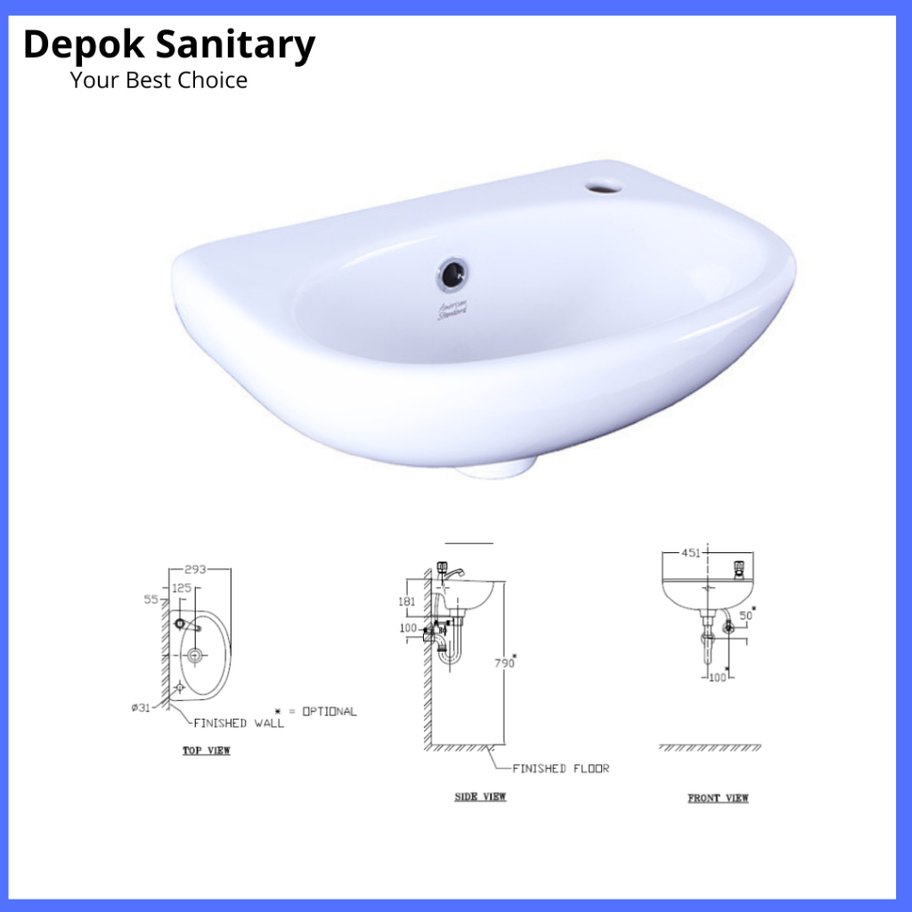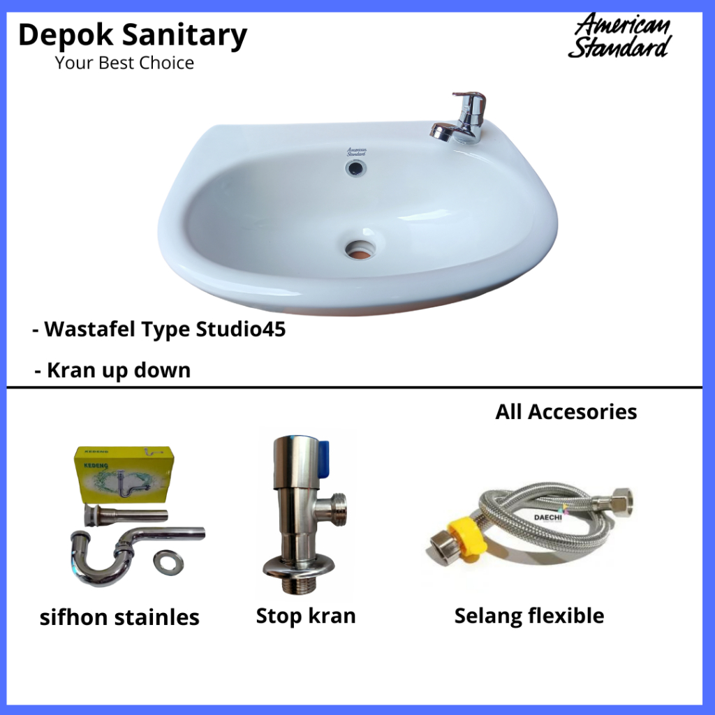 Wastafel American Standard Studio 45 Set Lengkap/ Washatafel Studio 45 Lengkap