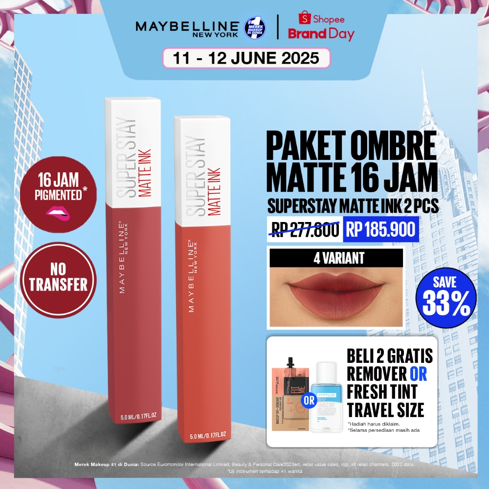 [Mall] SKINCARE MAYBELLINE OFFICIAL Paket Hemat Superstay Matte Ink 2 pcs Ombre Set Lipstick - Long Lasting