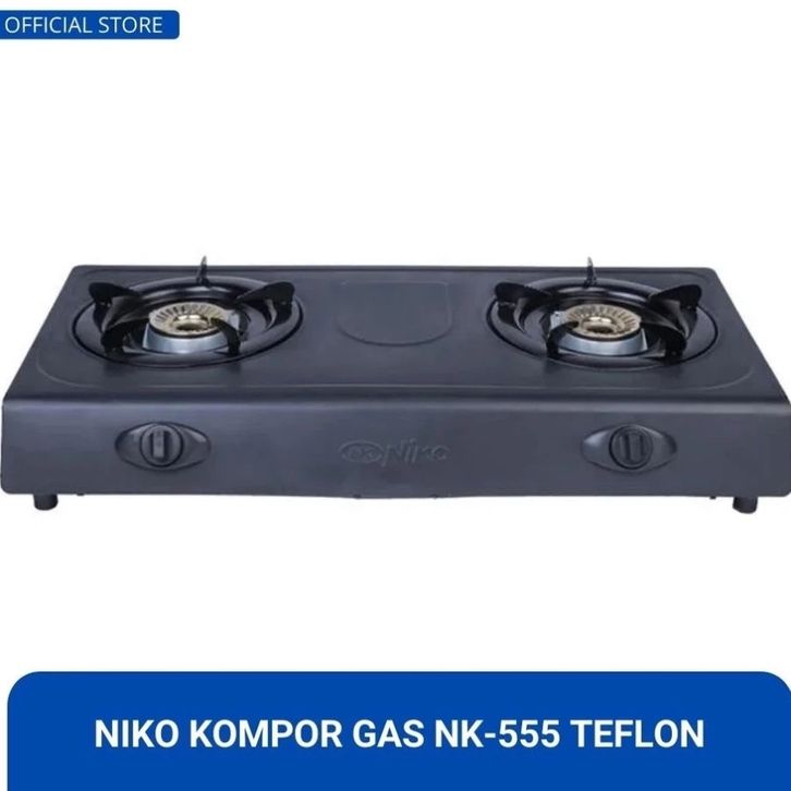 NIKO NK555 / NK666 KOMPOR GAS 2 TUNGKU STAINLESS STEEL TEFLON TEKNOLOGI API BIRU - FREE ONGKIR