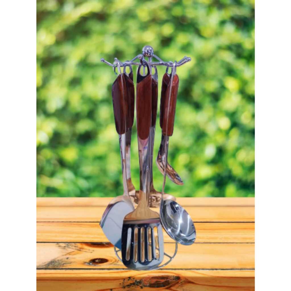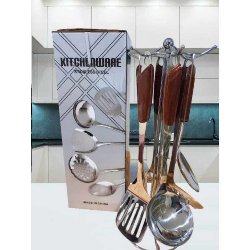 Satu set Peralatan Masak |6PCS | Sodet Suntil Stainless Gagang Coklat Motif Kayu | Spatula stainless