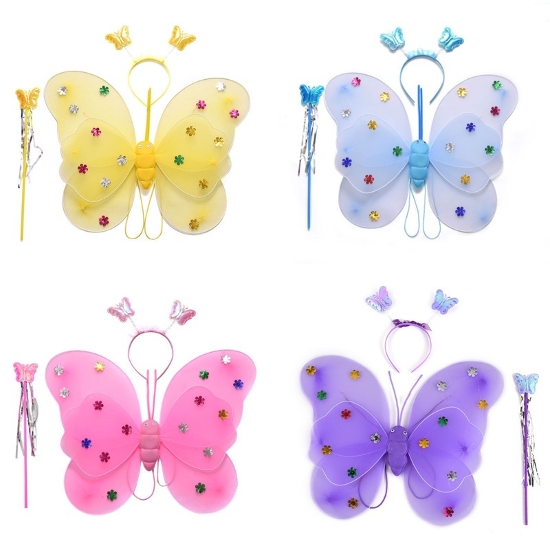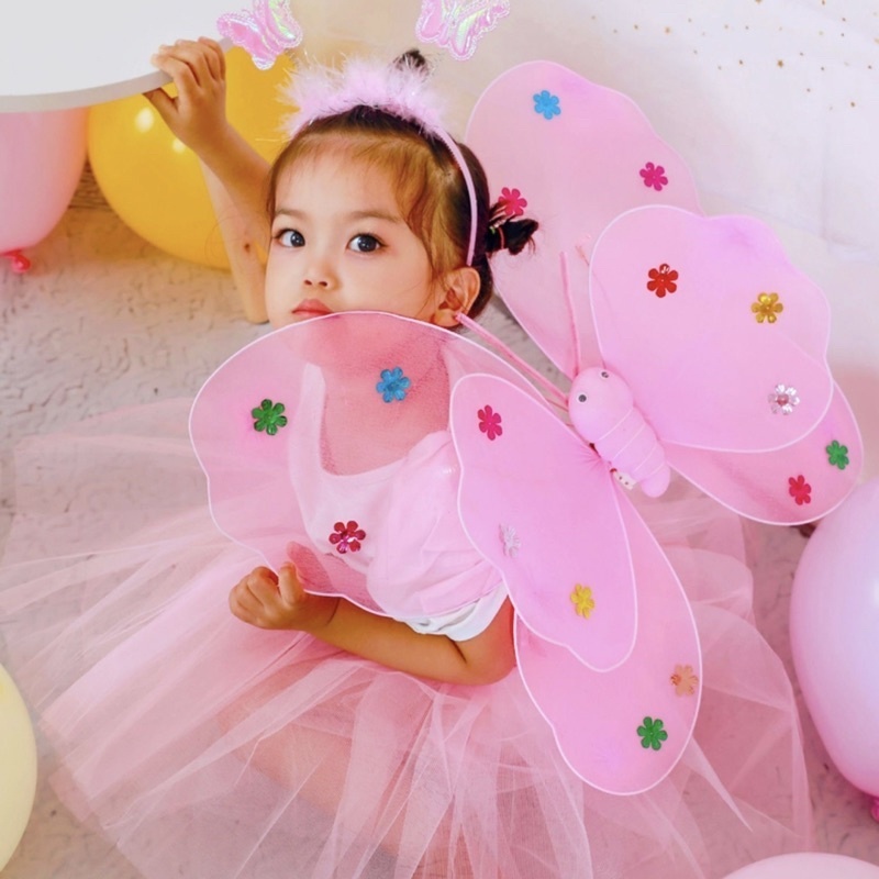 Kostum Sayap Peri Kupu Kupu Anak Bercahaya LENGKAP DENGAN SAYAP KUPU-KUPU, ROK, BANDO, TONGKAT