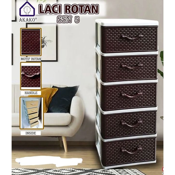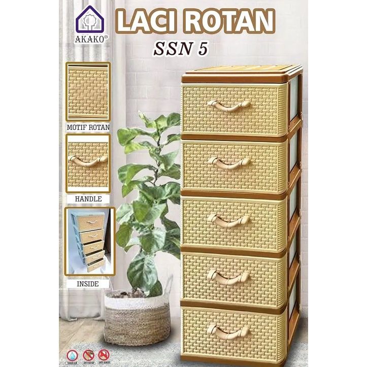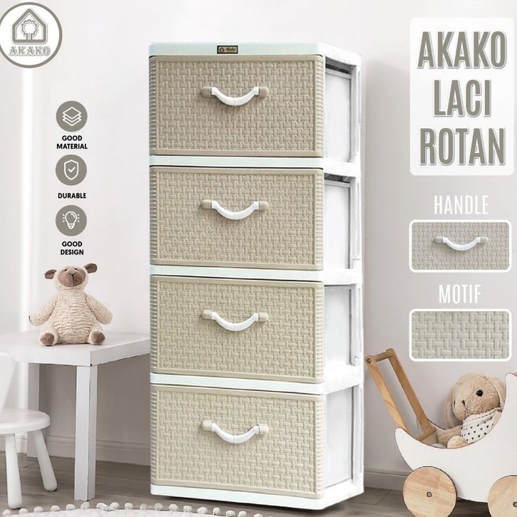 AKAKO - Lemari Laci Plastik motif Rotan susun 3 4 5 NEW PROMO TERLARIS Anti Rayap, anti jamur, anti air dan mudah