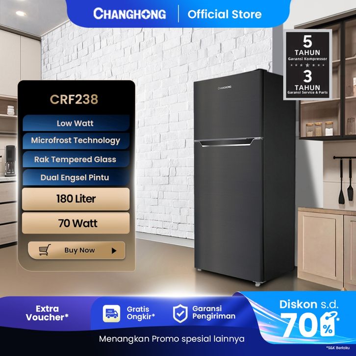KULKAS 2 PINTU CHANGHONG INVERTER TANPA BUNGA ES REFRIGERATOR LEMARI ES KAPASITAS 180 LITER