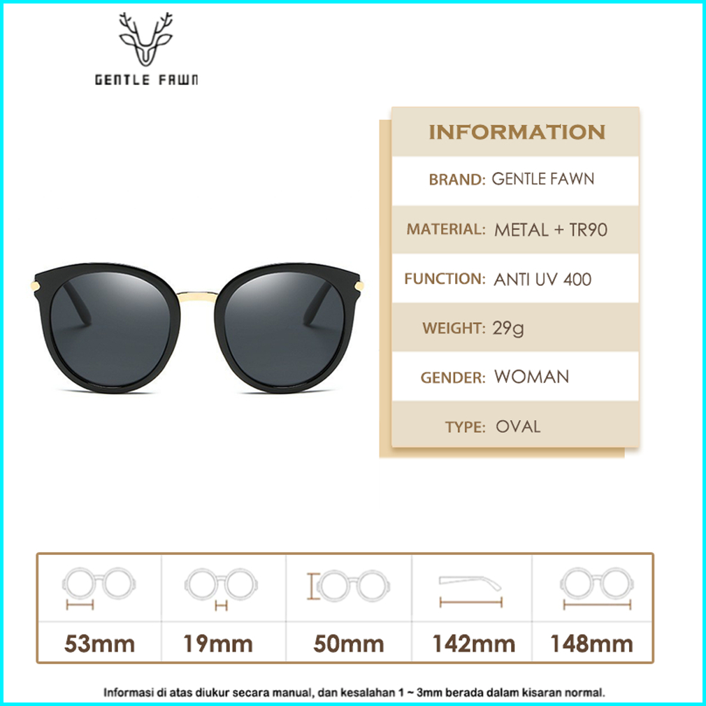 Gentle Fawn Kacamata Sunglasses Anti Uv 400 Sinar Matahari Wanita Fashion Korean Style Bentuk Oval Kekinian Keren Jisoo