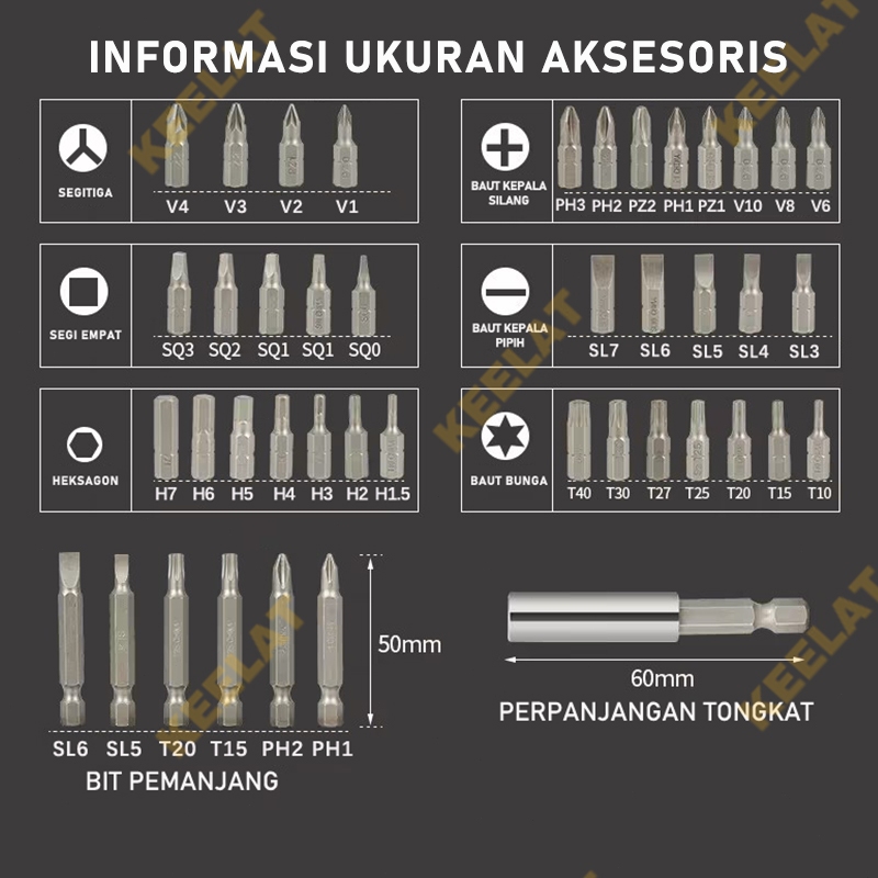 KEELAT 42PCS Mini Mesin Bor Cordless Screwdriver Obeng Baterai 4.2V