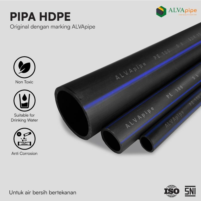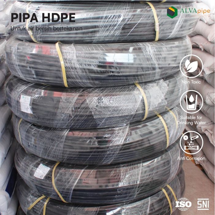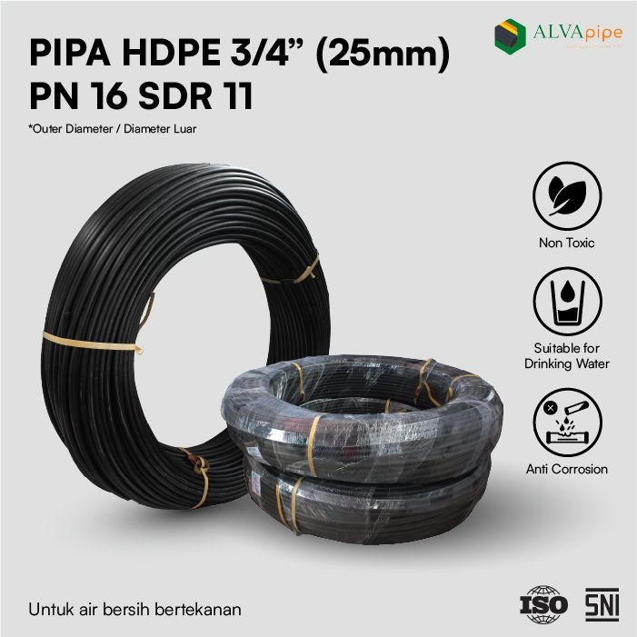 AlvApipe Pipa Air HDPE 3/4 Inch (25 mm) Tahan Korosi & Tekanan Tinggi PN 16 - Per Roll (250 Meter)