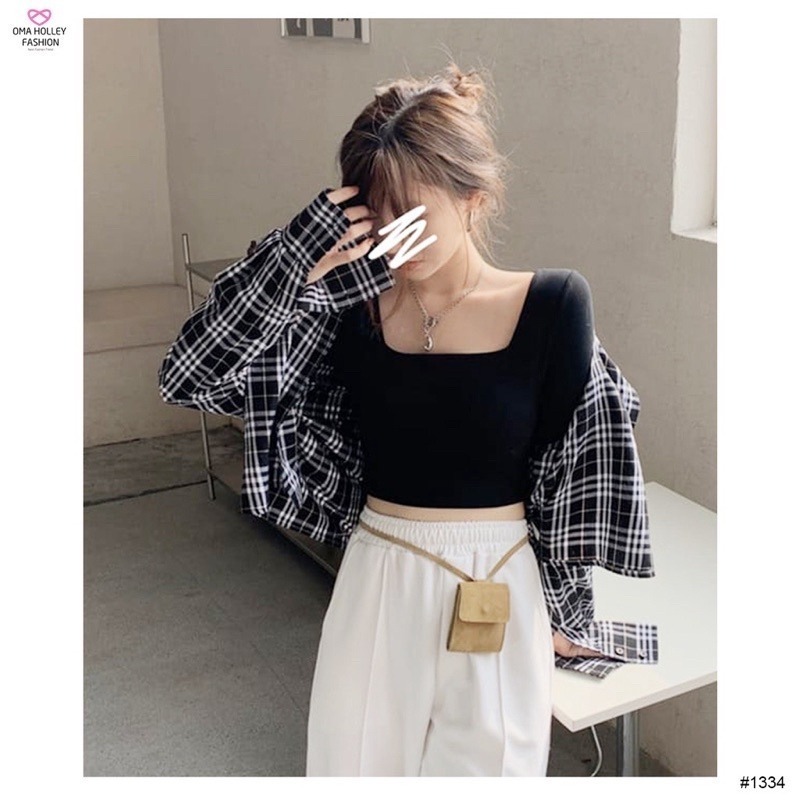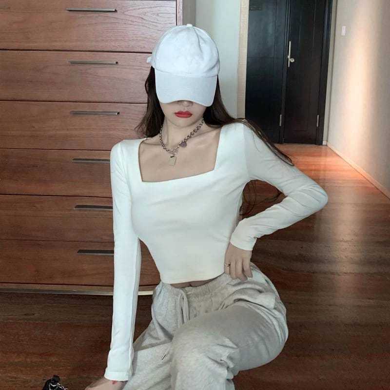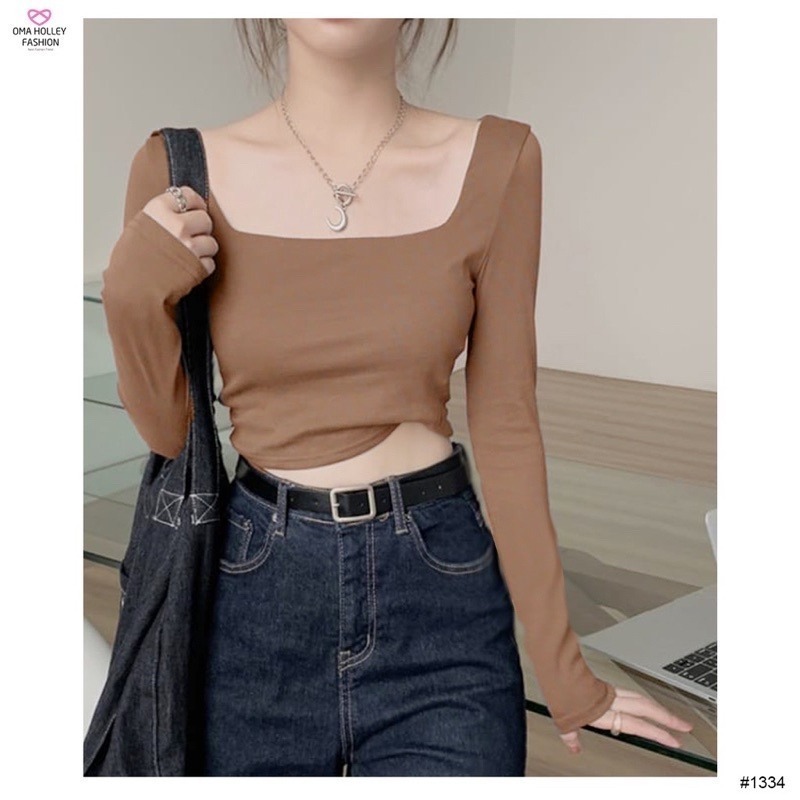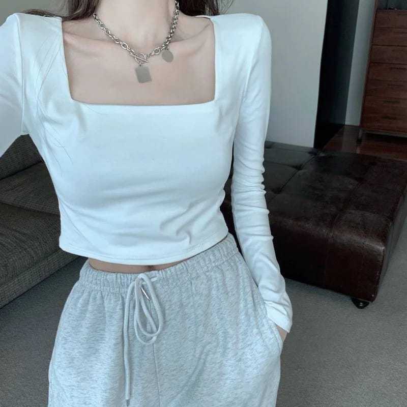 Fiore Square Longsleeve Crop Top Wanita (LD 84, P 44)