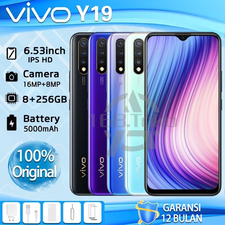 HP . Y19 RAM 8/256GB 6.53 inch Android 4G smartphone Face Wake Set lengkap baru Garansi 12 bulan