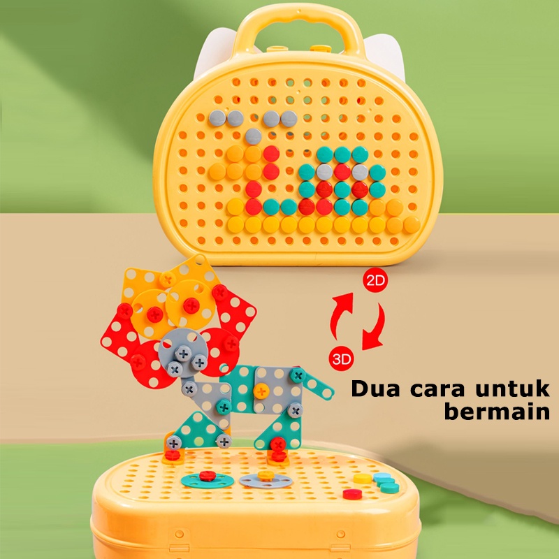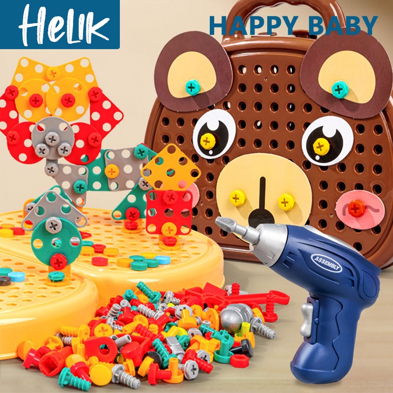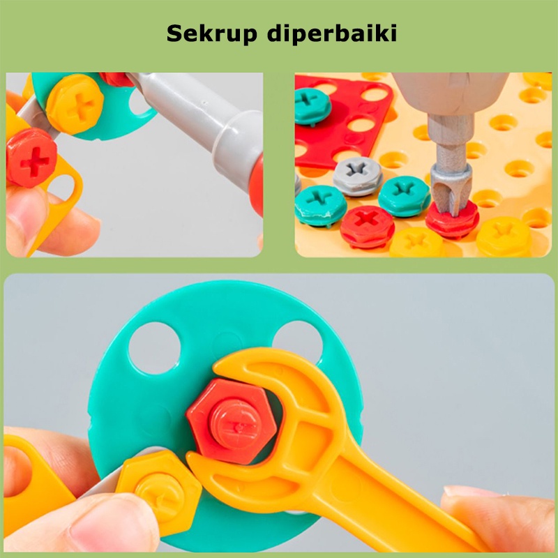 Mainan Bor Listrik Obeng Tool Set 203pcs Mainan Alat Anak Mainan Edukasi