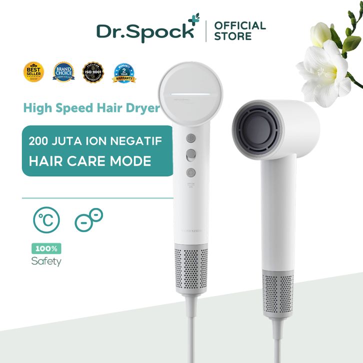 Dr.Spock Professional Hot & Cold Pengeringan cepat Pengering Rambut Panas & Dingin 1300W 3 Tingkat Suhu Portable Cepat