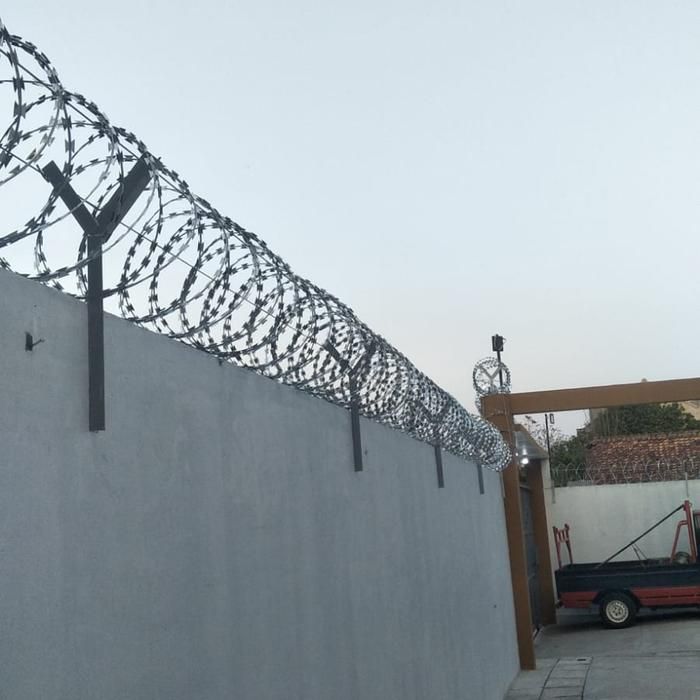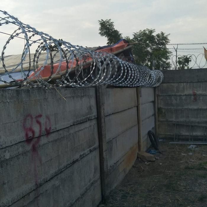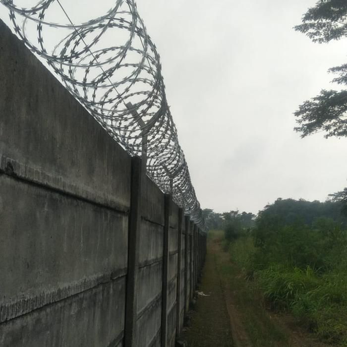 pemasangan pagar kawat duri silet bto30 bto22 dlengkap dengan tiang dan tarikan seling
