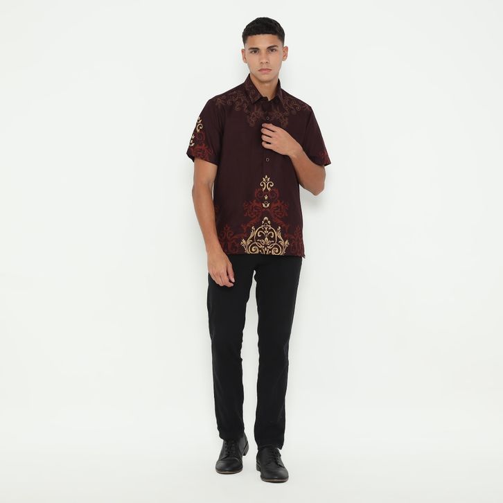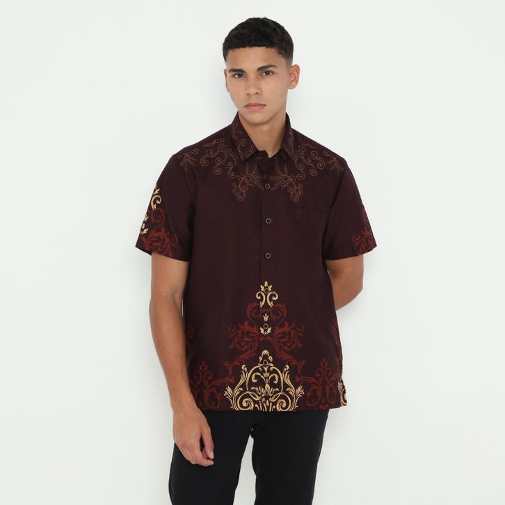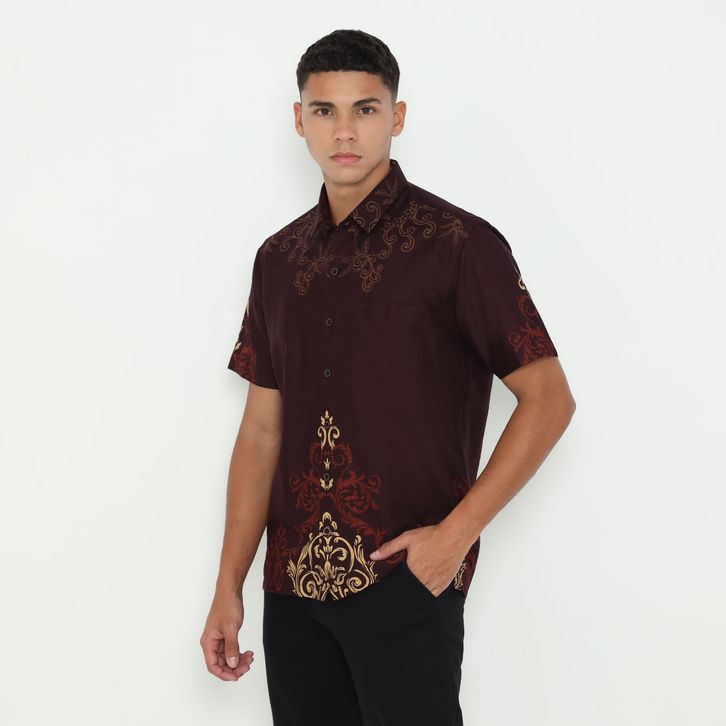 NEW Arrival LUIGI RICCIO Kemeja Batik Pria Lengan Pendek Red Series New Casual Kerja Kantor ugard