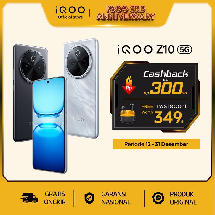 vivo iQOO Z10 12+512GB - 7300mAh + 90Watt, Snapdragon 7s Gen 3, AnTuTu 822,705, 120Hz Quad-Curved AMOLED