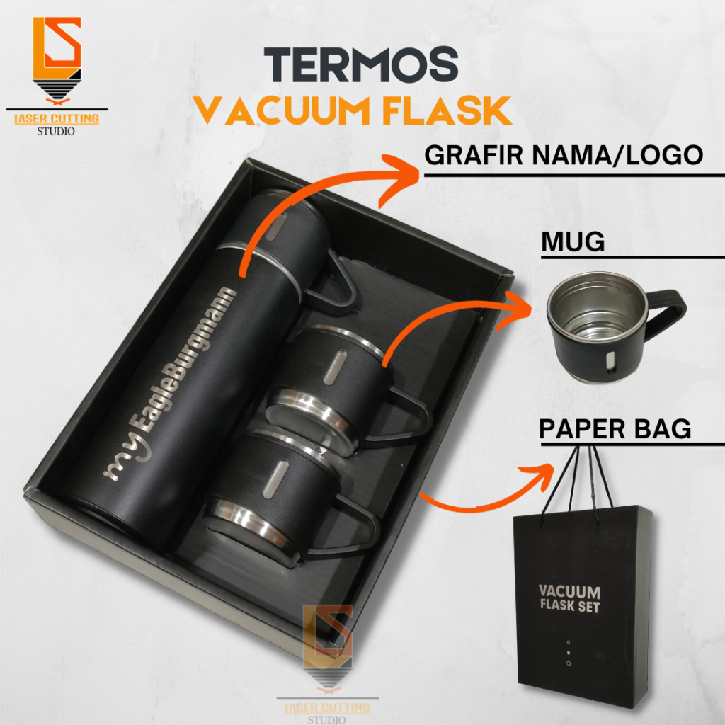 Tumbler Sultan Custom Nama Vacuum Flask Set Custom Grafir Termos Stainless Mug Cangkir 3 in 1 Hampers Souvenir PR0mosi
