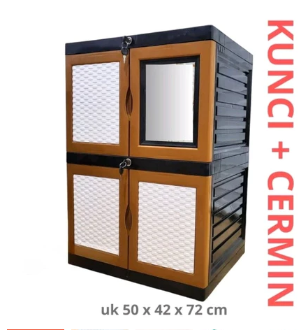 LEMARI PLASTIK LEMARI PAKAIAN LEMARI BAJU LEMARI BUKU SSN 2 KACA = KUNCI