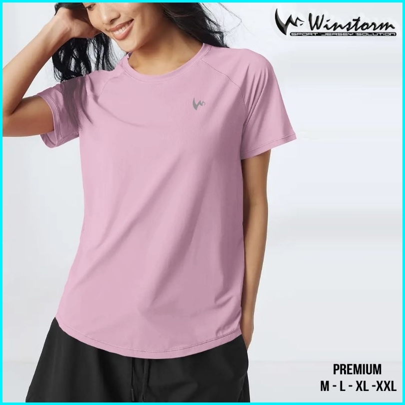 Winstorm Raglan Cewe Baju Olahraga Wanita Premium Dewasa Kaos Badminton Cewe Jersey Running Polos