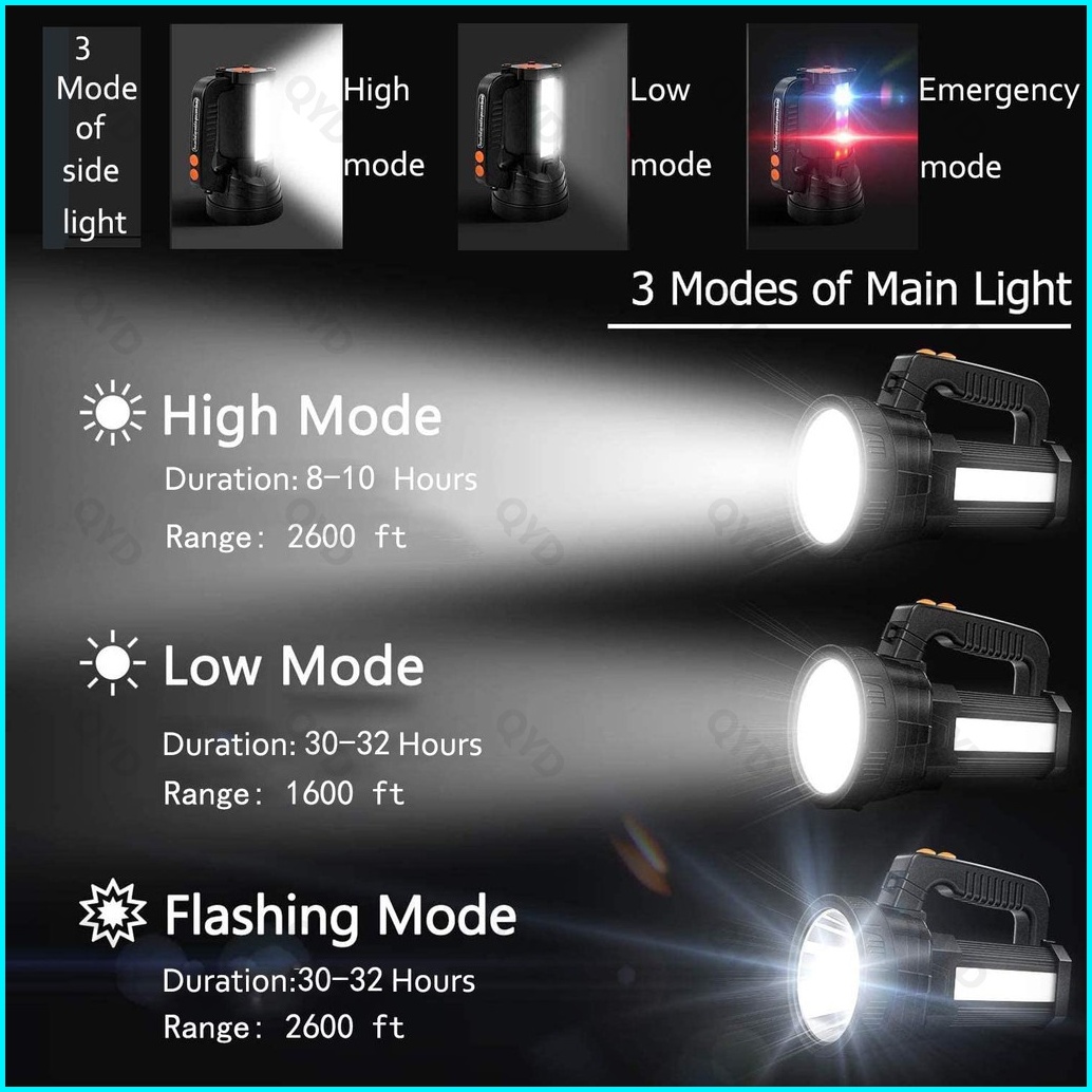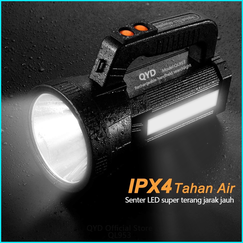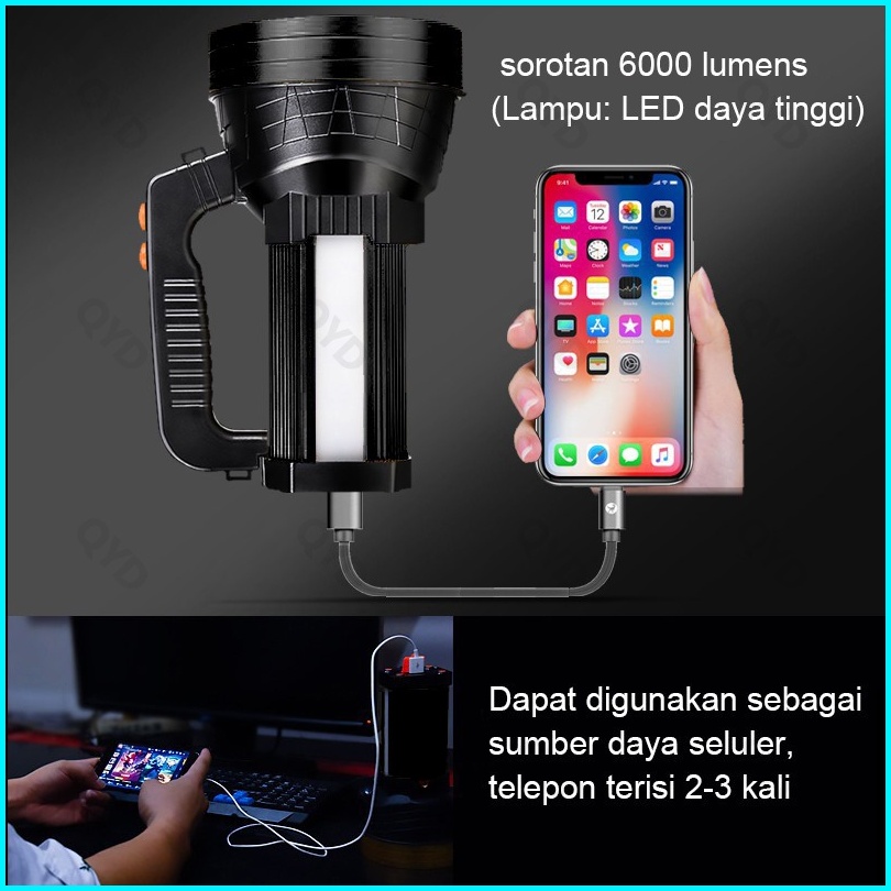 Qyd Senter Led Super Terang Jumbo Multifungsi 80w Ipx4 Tahan Air Waterproof Power Bank Lampu 8000 Lumen Senter Besar Cas