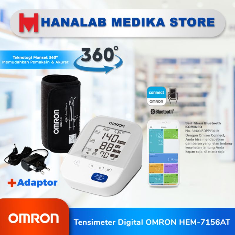 OMRON HEM-7156T-A Bluetooth + Adaptor Tensimeter Digital