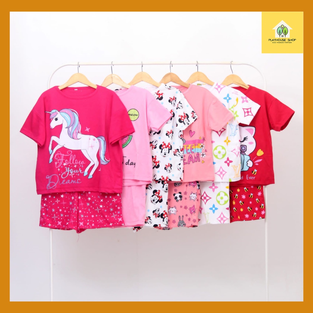 Baju Anak Perempuan Setelan Kaos umur 4-15 Tahun/Stelan Pendek Anak cewek/Baju Rumah Anak Perempuan