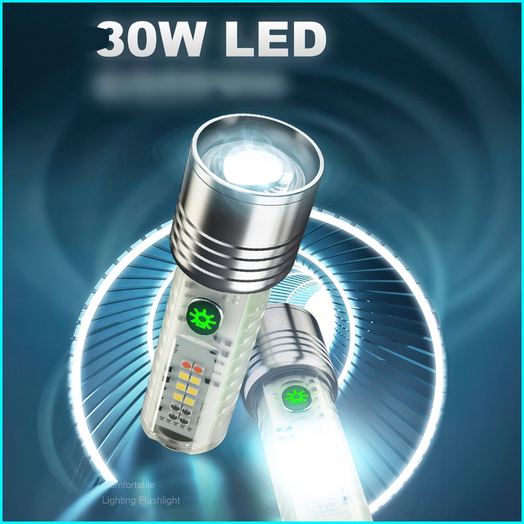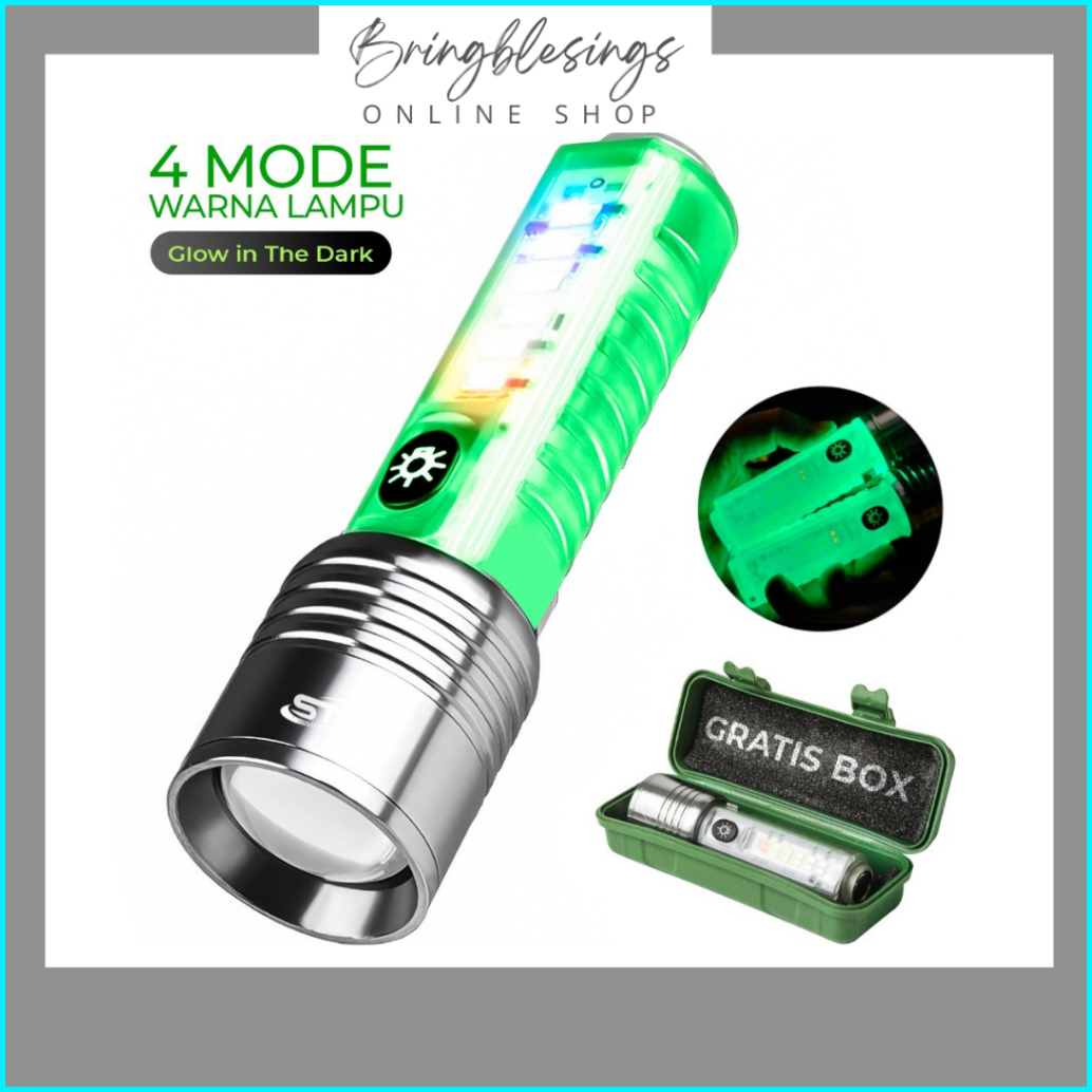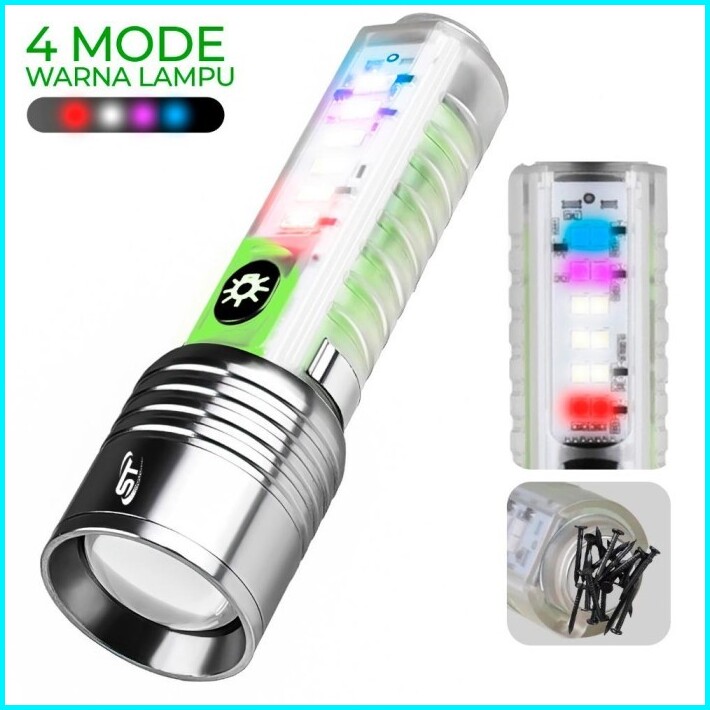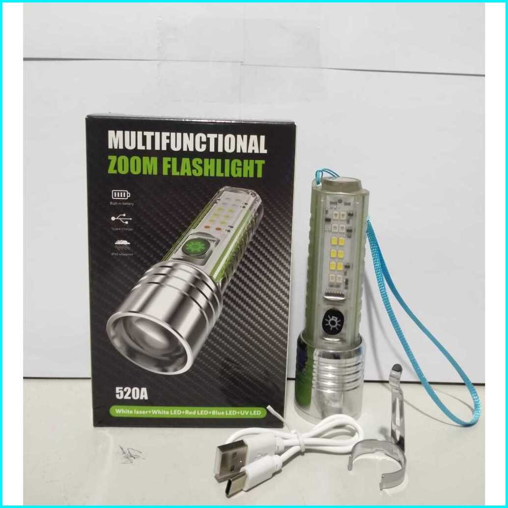 Senter Saku Maghnet Zoom In Out Cas 8 Mode Warna 30w Waterproof Flashlight 520a