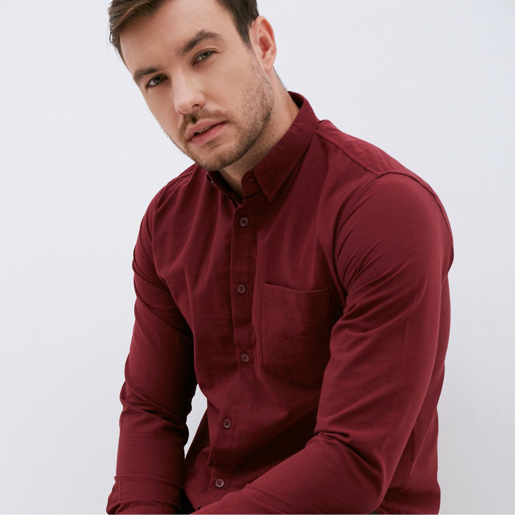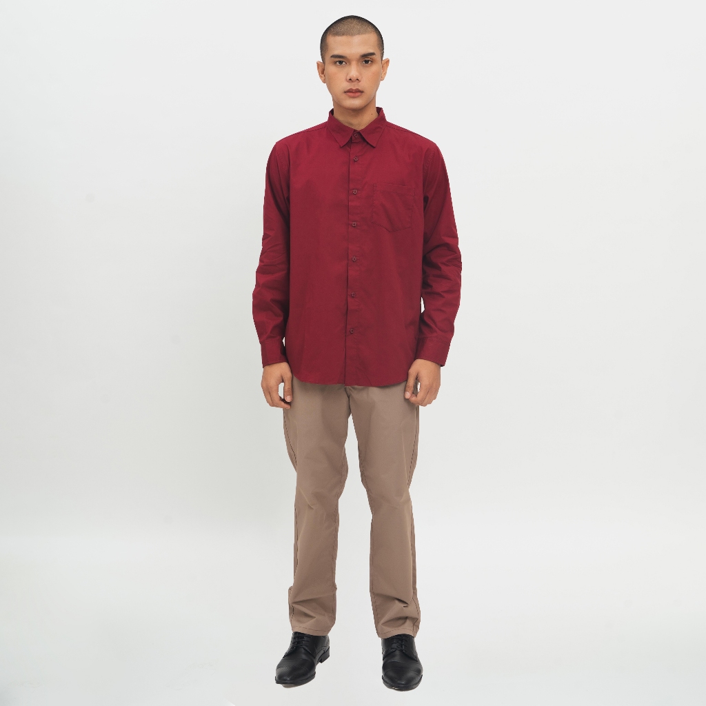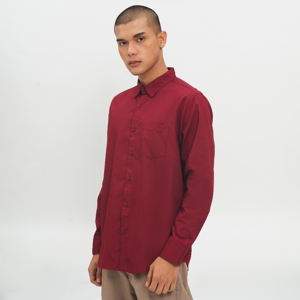 M231 KEMEJA PRIA BASIC POLOS PANJANG MAROON 1468B