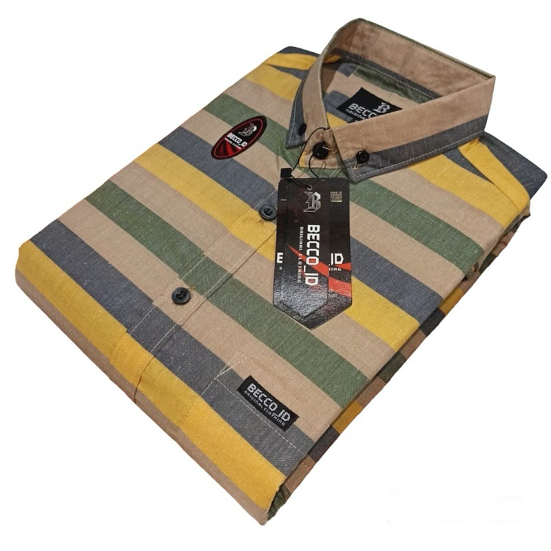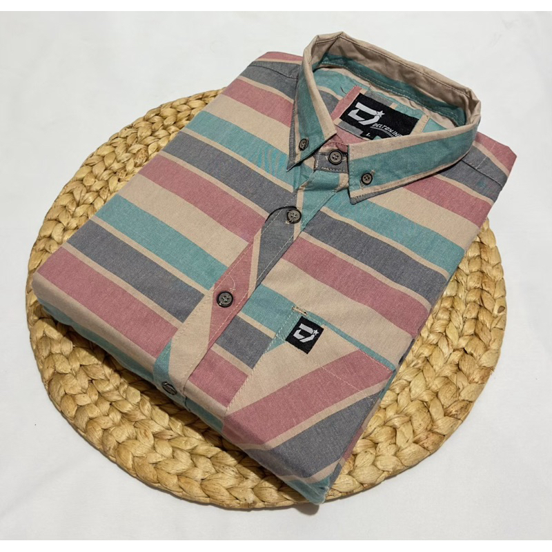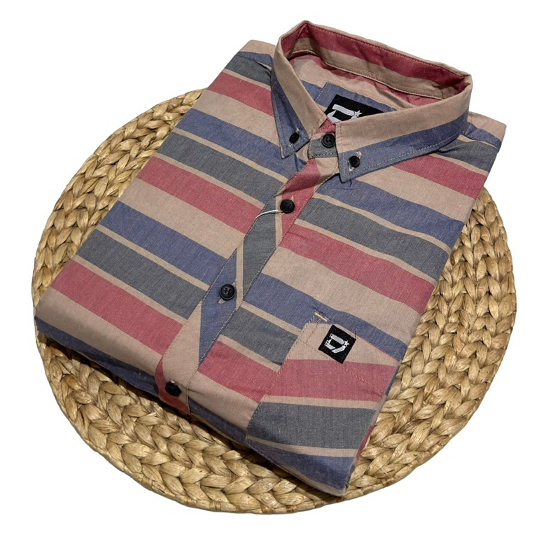 PROMO - KEMEJA LENGAN PENDEK PRIA - MOTIF SALUR GARIS DISTRO PREMIUM - KEMEJA MOTIF SALUR LENGAN PENDEK TERBARU - SIZE M L XL