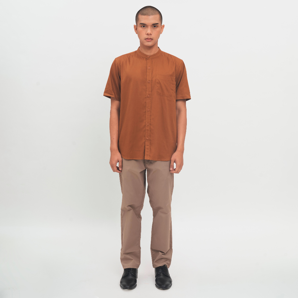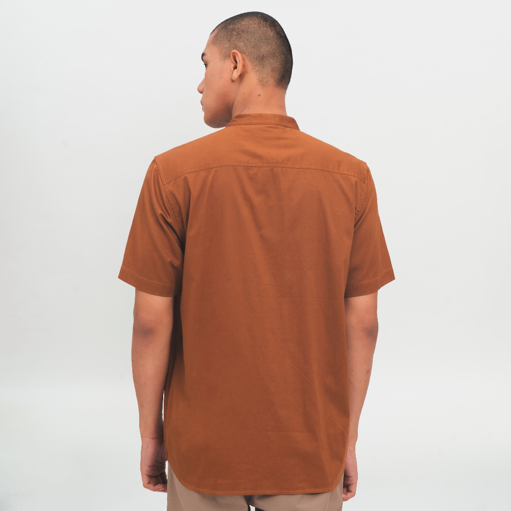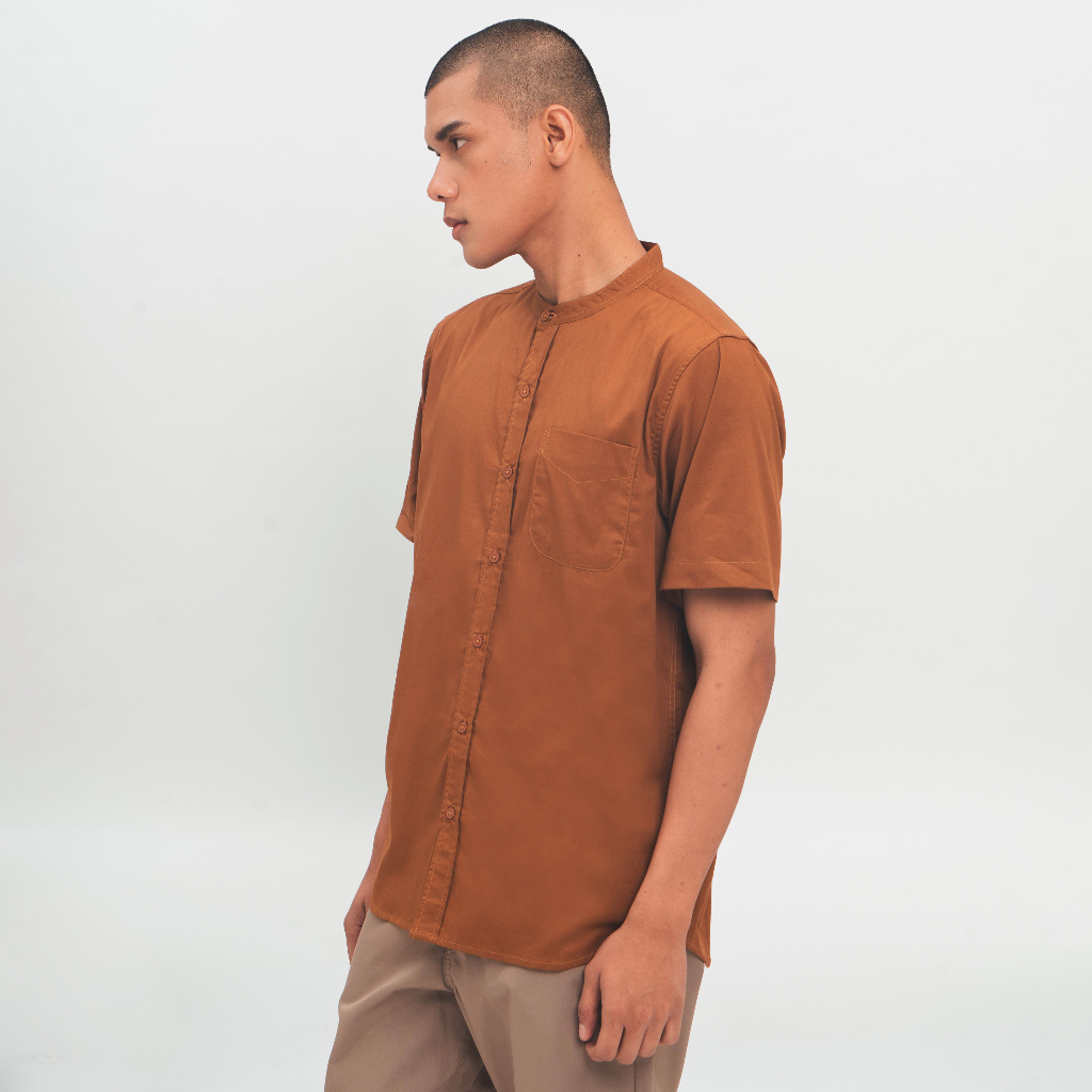 M231 KEMEJA PRIA KOKO SHANGHAI POLOS PENDEK COKLAT 0914B
