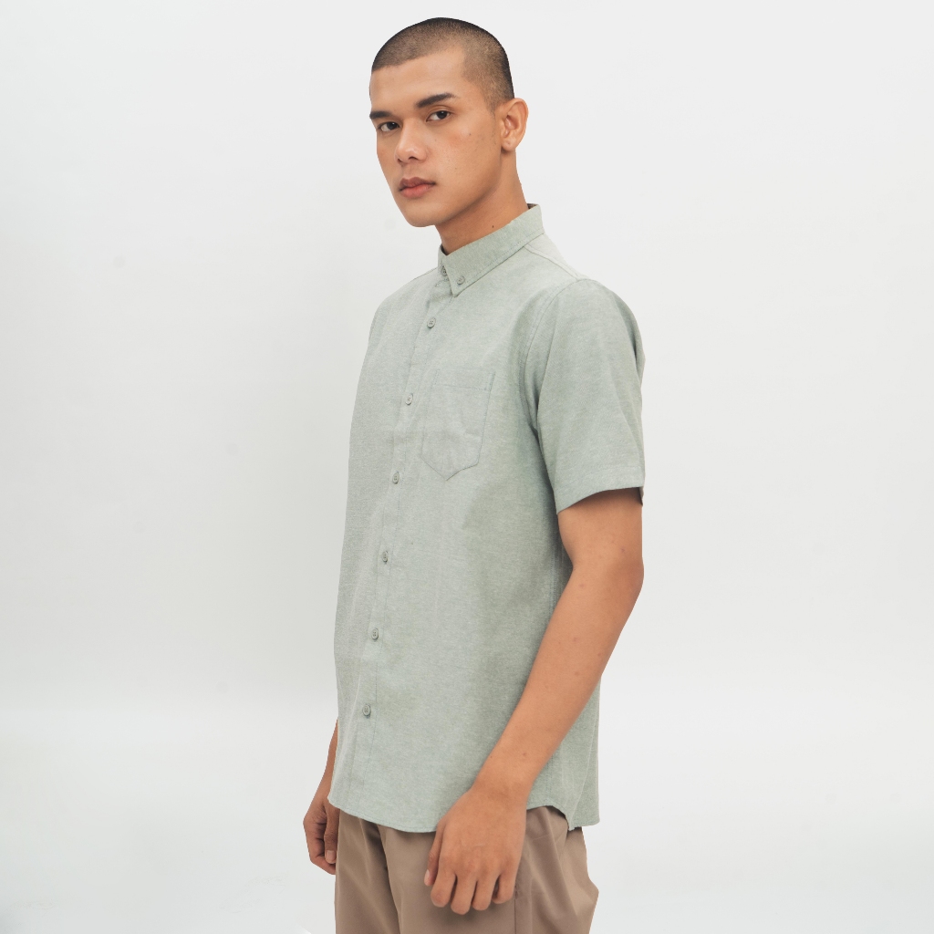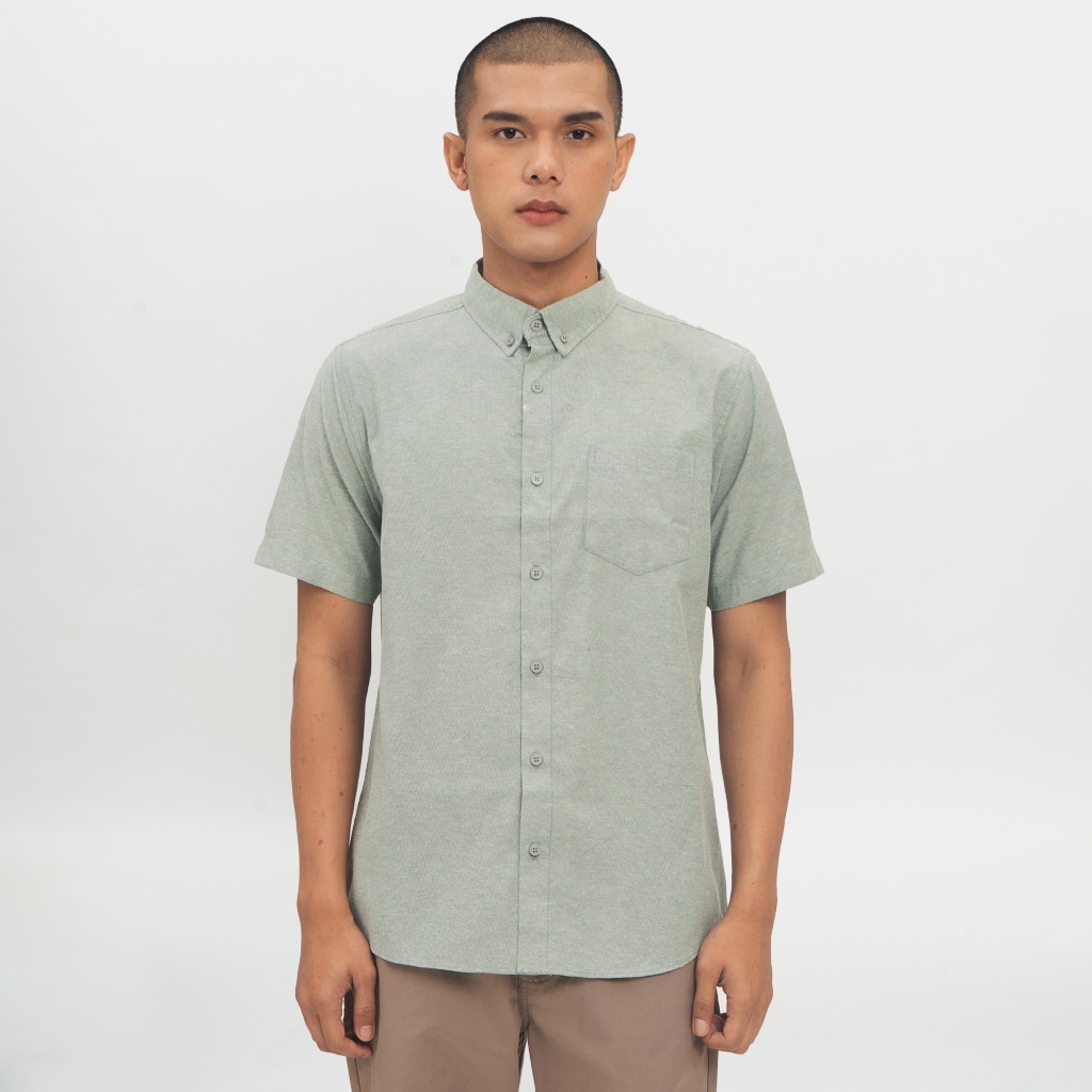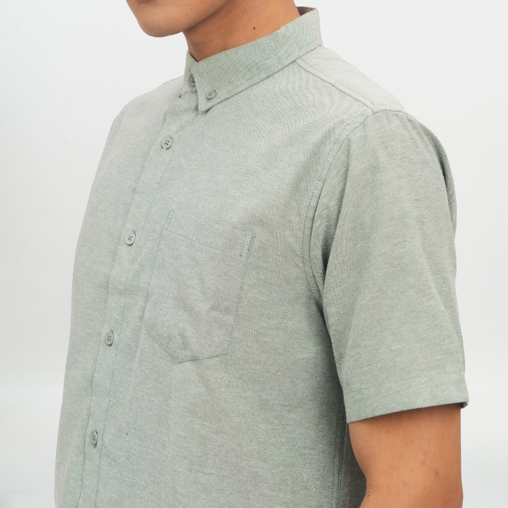 M231 KEMEJA PRIA BASIC POLOS OXFORD PENDEK HIJAU PUPUS 1457L