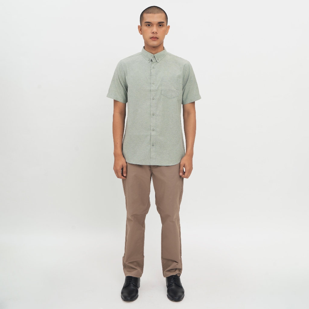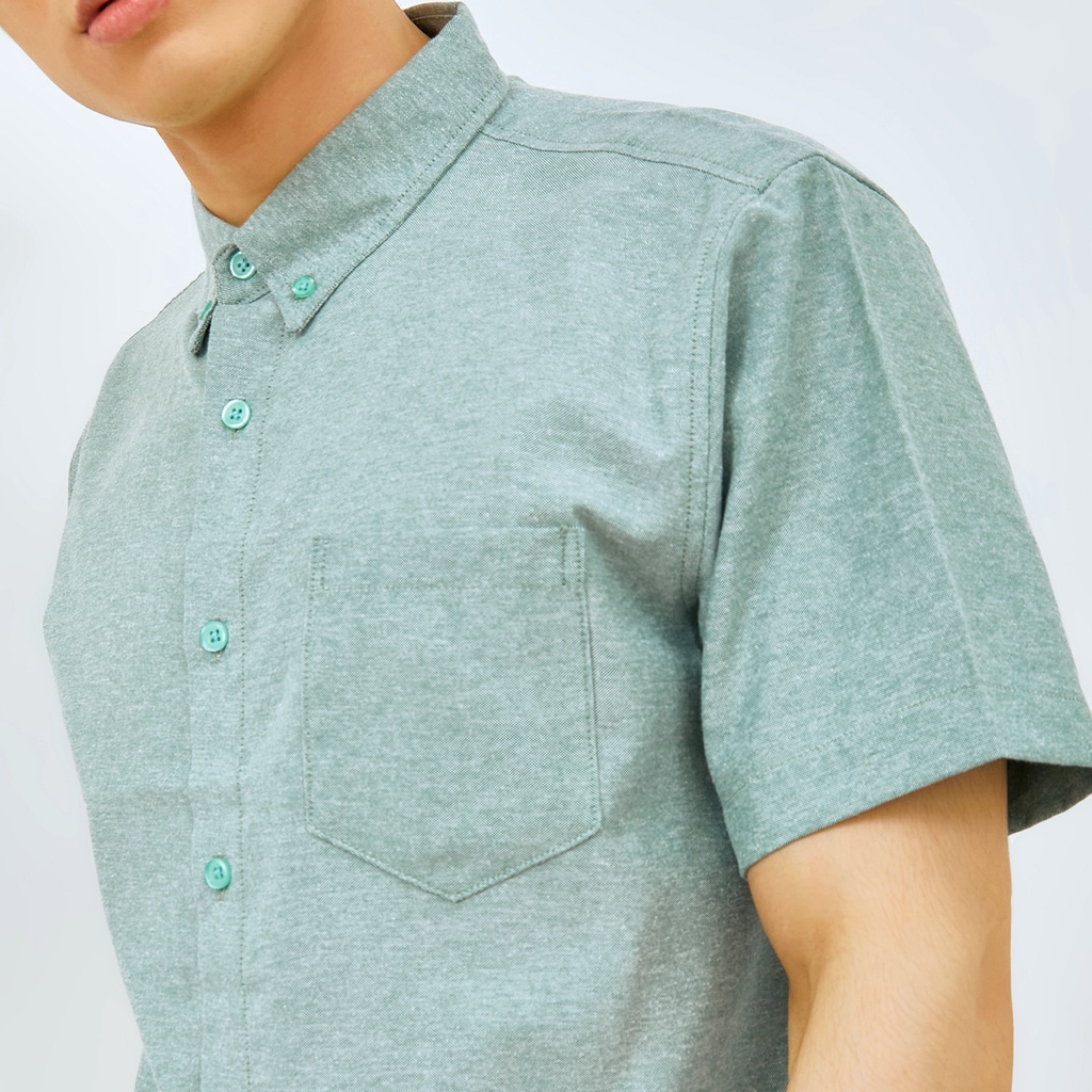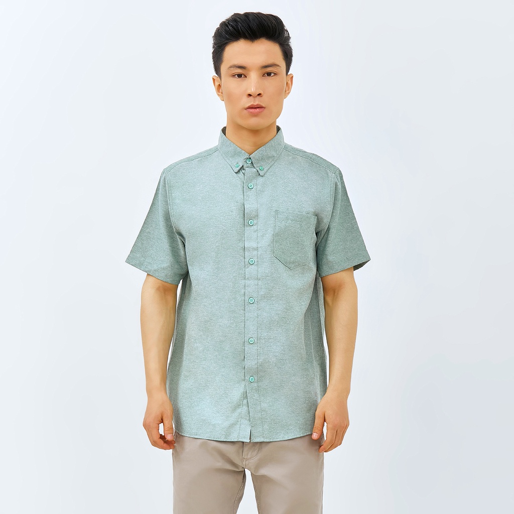 M231 KEMEJA PRIA BASIC POLOS OXFORD PENDEK HIJAU PUPUS 1457L
