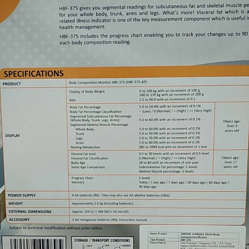 Karada Scan Body Composition Monitor Omron HBF-375 / Timbangan Digital Omron HBF-375 / Omron HBF-375 / Karada Scan Omron