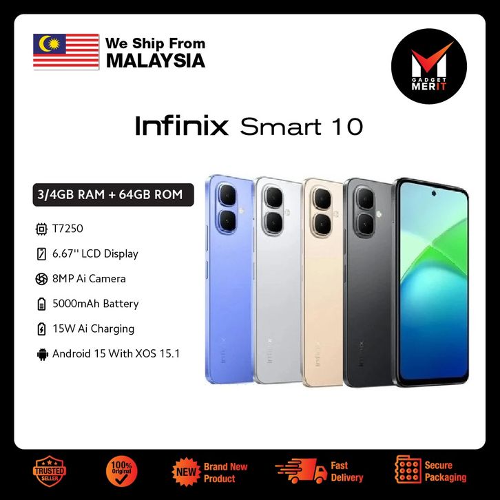 Infinix Smart 10 Smartphone | Unisoc T615 | 6.67" IPS LCD Display | Dual Rear Camera 8MP