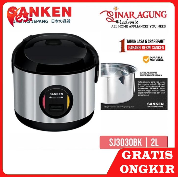 YES MEJIKOM RICE COOKER MAGIC COM RICECOOKER RESKUKER MEGICOM SANKEN SJ3030 / SJ-3030 RICE COOKER 2 LITER - GARANSI RESM